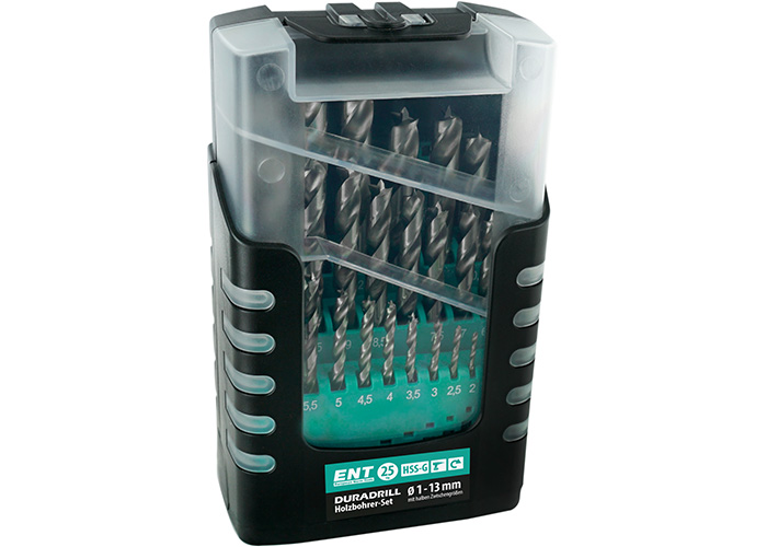 ENT 25-dielna sada Duradrill špirálových vrtákov do dreva HSS-G